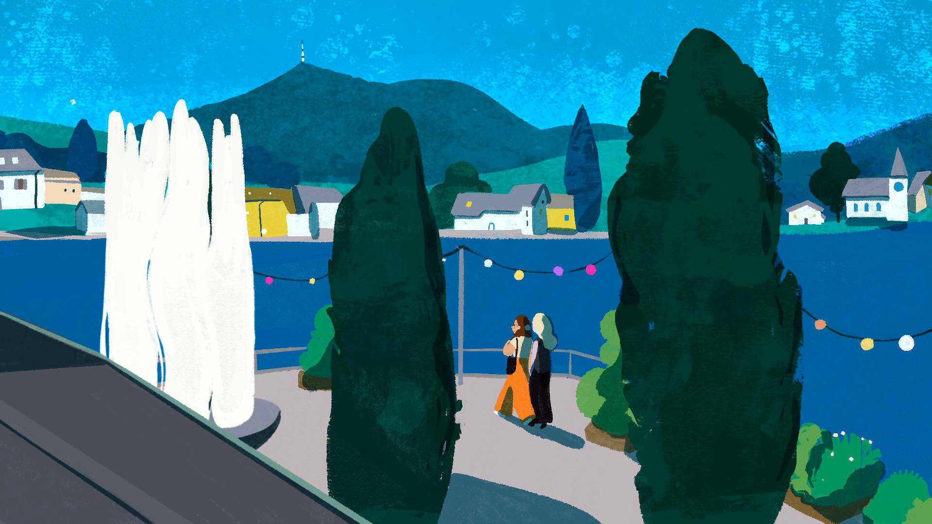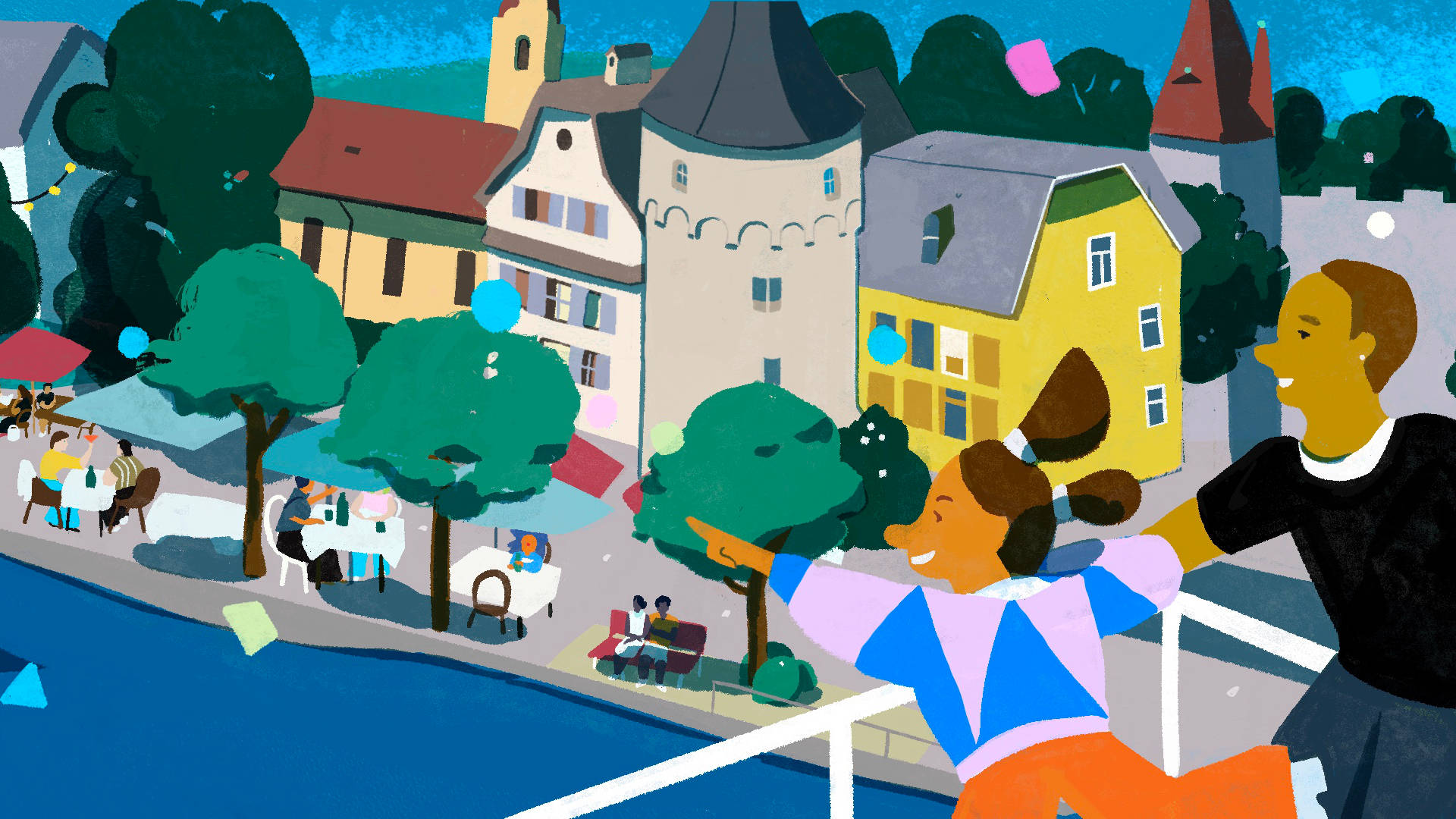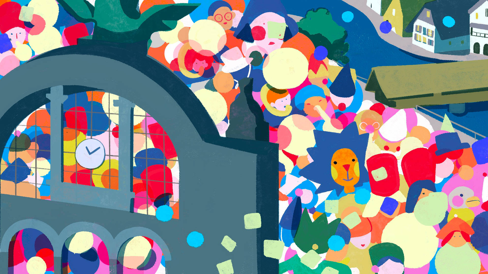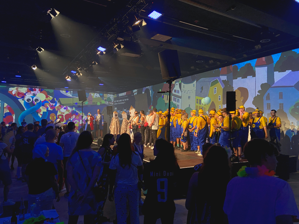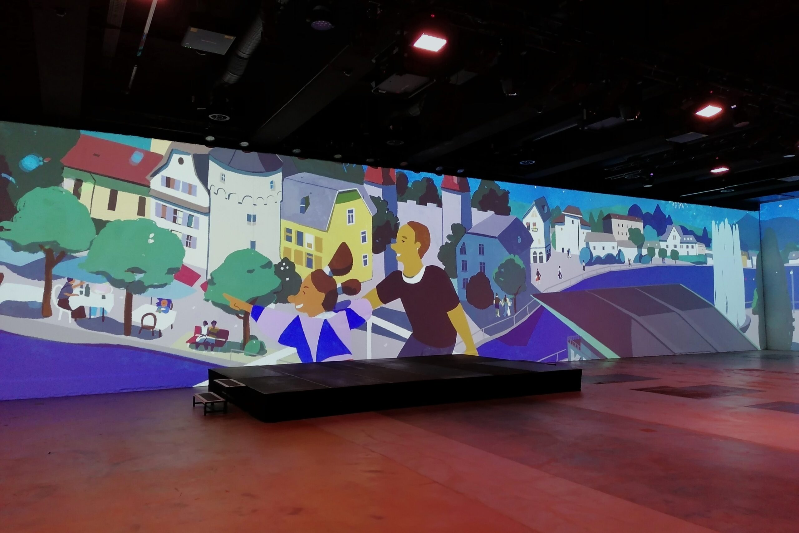 For the anniversary of the Luzerner Kantonalbank I illustrated and animated the city of Lucerne. It was projected as a 270° panorama in the Auviso Spinnerei-Halle in Emmenbrücke to create a colourful and entertaining backdrop for the dinner and party.